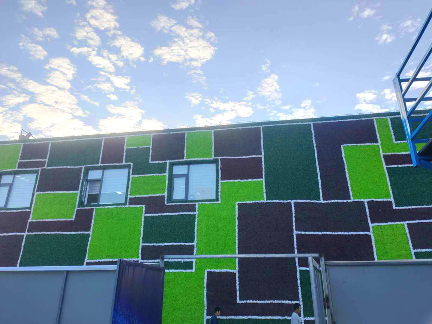 墻面尺寸為長20.9米,高8.8米,所需綠雕草皮總面積175平米,